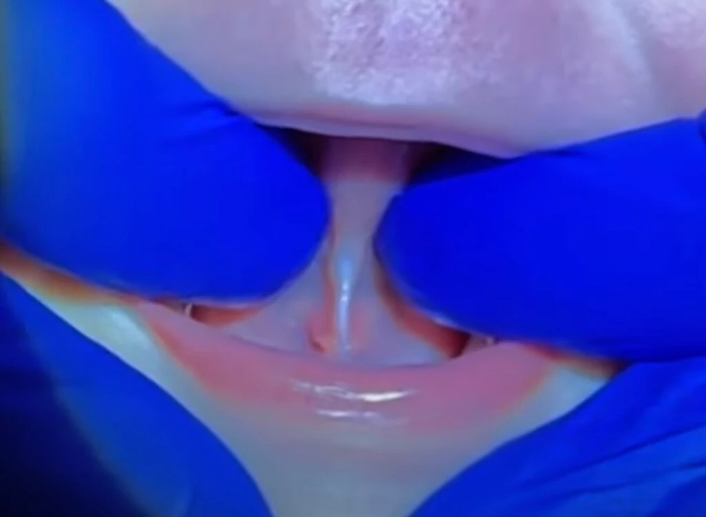 With all of that out of the way, here are the specifics. We have to prevent the wound from readhering, also called reattaching. If you had your ear pierced but didn’t wear the earring, it would close up, and you would need to be pierced again. It’s the same with the tongue-tie release (lip-tie, cheek-tie, etc.). You have to do stretches or the wound edges will stick back together – end of story. People who say you don’t need stretches are performing a minimal clip, are inexperienced, or do not have patients back for follow-up and see how much tissue grew back together. Even if the wound is sutured, stretches are still needed, as sutures fall out within 3-7 days typically, and the wound readheres below the sutured area.